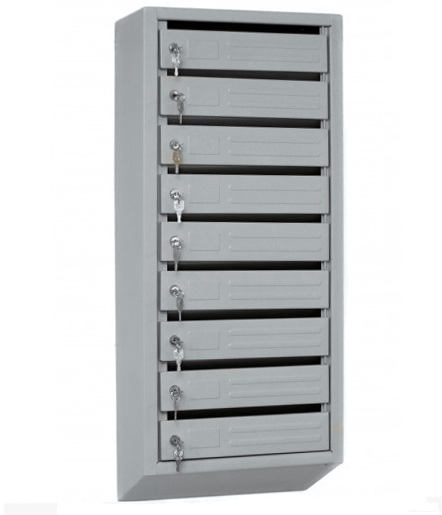 Бюджетный стандартный 9-и секционный почтовый ящик для подъездов серии «Стандарт Бюджет» без задней стенки. Корреспонденция располагается в секции под углом, замки слева, дверца открываются слева на право. Поставляются ящики с комплектом замков.